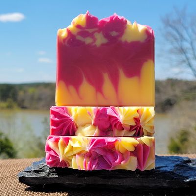 This bar is a fragrant blend of sweet raspberry and bright lemon in a wonderful blend of nourishing oils and shea butter.