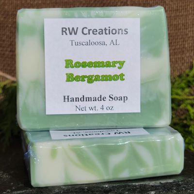 This soap is a castile soap blend with 85% olive oil with a light Rosemary and Bergamot fragrance.